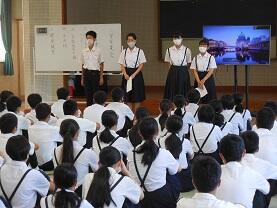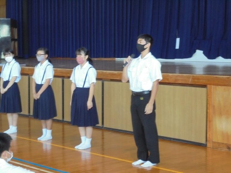 挨拶の練習、各学級の専門委員長からの抱負と反省、「班対抗実力テスト対策問題対決」という内容で、計画、準備、運営のすべてを中央委員会が中心となって行われました。