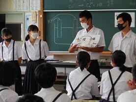 「電池が電流を生み出すしくみを説明できるようになろう」の学習目標で、各班の発表まで行いました。生徒は、真剣に話し合いに参加し、自分の考えを述べるなど、主体的に学びに向かう姿が見られました。