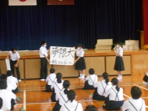 3年生は、各学級の中央委員会の紹介、各学級の学級目標の紹介、挨拶対決、容儀検査を行いました。