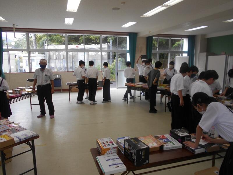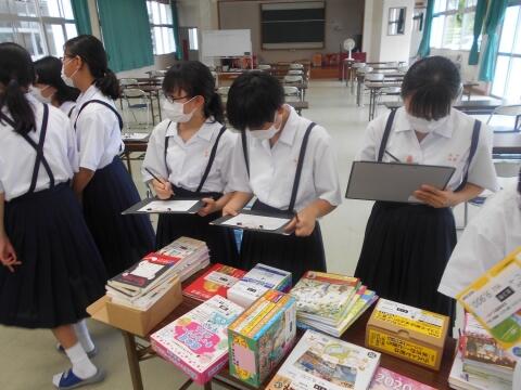 本日の昼休み、3年生と2年2・3組を対象に多目的室において「図書展示会」が行われました。本日が最終日でした。どの本を図書室に置いて欲しいかを真剣に考え、投票していました。業者の方からも「旭中の生徒の真剣さが伝わってきました。良い生徒達ですね」。と感想を述べられていました。