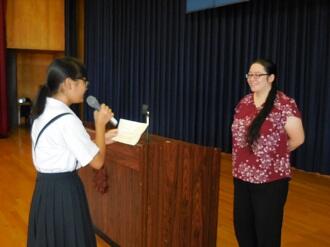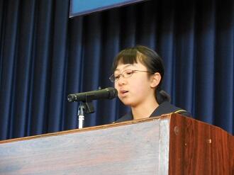次に英語暗唱・弁論発表です。地区大会を勝ち抜き、なんと全国大会に出場する生徒も。(11月に東京で開催されます)