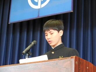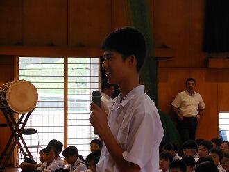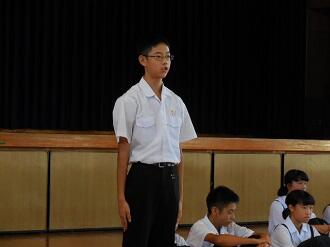 そして、式の前に県大会に出場する吹奏楽部の演奏を聴き、その後、表彰を経ていよいよ終業式となりました。式では、4名の代表(1~3年と生徒会)が一人ずつ1学期の反省を発表しました。