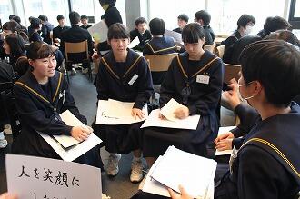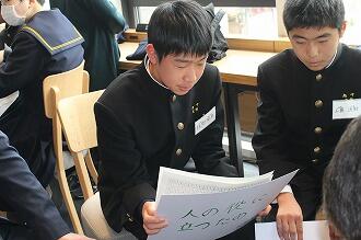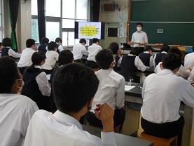 例年7月の参観日に講師を招き、生徒・保護者で一緒に考えてきましたが、今回は、学級活動の時間に各学級ごとに実施しました。