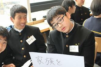 ②授業後、生徒が記入したワークシートを持ち帰り、家庭で話題にし、