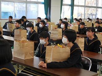 本日は、1年生と2年1組、来週の22日(月)が3年生と2年2組が対象です。