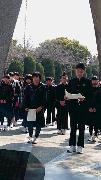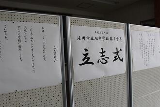 本校では本日29日、朝の会で延岡大空襲の資料による学習を行い、当時の写真を学級に掲示し、さらに下足室前に展示パネルコーナーを新設しました。午前10時には、犠牲者の冥福を祈るとともに、世界の恒久平和を願い、黙祷を行いました。