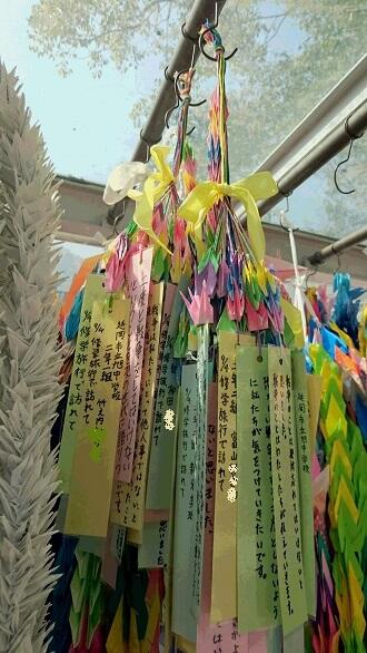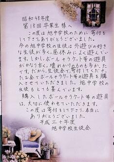 また、保健室前には「旭中健康短冊」が掲示されています。「旭中のみんなが元気に過ごせますように」、「今年こそはインフルエンザにかからない」、「無遅刻・無欠席で過ごす」など書かれていました。