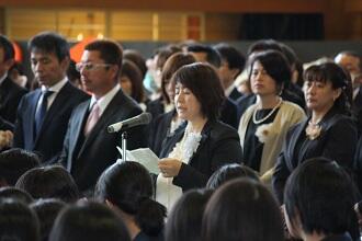 数十年ぶりに母校の校歌を聴いて、懐かしむ先生もいました。