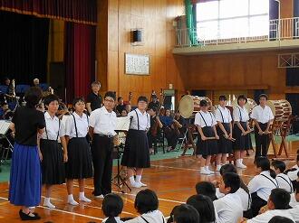 また、7月25日(土)県吹奏楽フェスティバル(宮崎市民文化ホール)に出場する吹奏楽部の演奏披露もあり、盛大な式に花を添えてもらいました。
