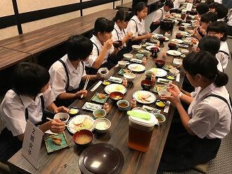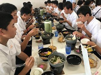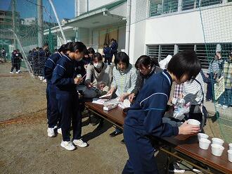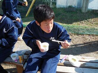 2年生は、ごはんも無事に炊け、2年の保護者の作ってくれた味噌汁でごはんをいただきました。