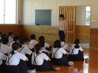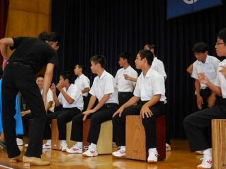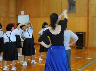 6月20日(水)に、平富恵スペイン舞踊団が来校され、鑑賞教室のワークショップが行われました。これは、秋に本番の鑑賞教室が実施されるのですが、その前に3年生のみを対象に行われたものでした。当日は6名の方が来校され、3年生相手に、踊りや楽器の使い方を教えていただきました。さすが、プロの動きには、なかなかおよびませんが、一生懸命リズムにのりながら、興味津々楽しそうに勉強していました。また、「カホン」という楽器のようなものを打ち鳴らしながら、リズムをとっていました。ここで、学習したことを、秋の本番の鑑賞教室で3年生も披露するそうです。楽しみですね。