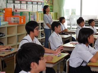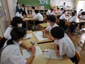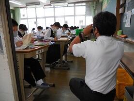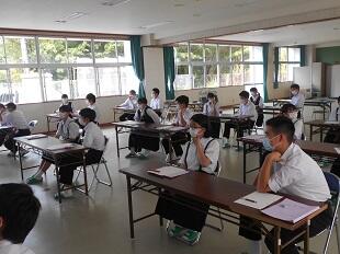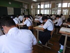 朝から湿度が高く蒸し暑い教室でしたが、空調を入れ快適な中で真剣に取り組んでいました。(写真は2年生の様子)