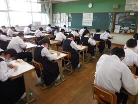 13日(月)全学年で県数テストが行われました。4月に実施できなかったため今回になりました。1年生は小6の内容、2年生は中1の内容、3年生は中1・2の内容でした。1年生にとっては中学校に入学してはじめてのテストでした。