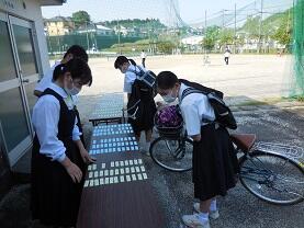 朝は生徒会書記の2年生・佐藤花華さん、放課後は生徒会書記の2年生・中野倫彰さんが担当しています。毎日ありがとうございます。
