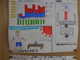 6月と7月の目標は「熱中症を予防しよう」で、各学級で熱中症予防についての新聞を作成しました。どの学級もわかりやすく工夫され、読み応えのある内容です。