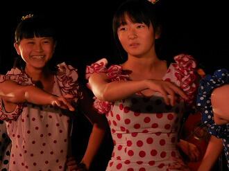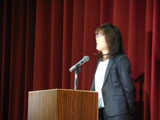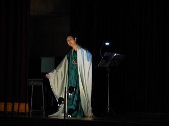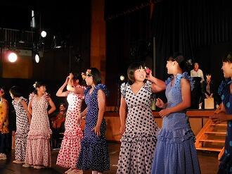 上演を終了され、舞台から降りて、生徒達にやさしく語りかける柴田美保子さん。