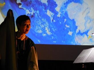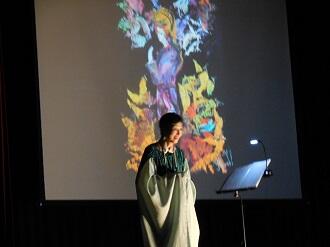 6月25日(月)に、UMKテレビ宮崎、市川本古事記製作委員会主催の「ひむか天語り」という講演がありました。これは、脚本家であった故市川森一さんの脚本で、それを奥様の女優柴田美保子さんが語りや、画家のマークエステルさんの絵の映像等で表現するというものでした。さすが、一流の芸術家が作り上げる舞台は息をのむ迫力でした。特に、柴田さんは、2年前にも本校で、本日の前段階を上演してくださったのですが、今回はなお一層、素晴らしい「古事記」の世界を表現されていたようです。あっという間の時間でしたが、子供達も圧倒されたようでした。