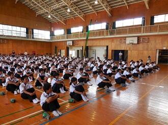 7月20日(金)は第1学期の終業の日でした。今年は、例年になく暑い日が続き、本来ならば大清掃を済ませてから終業式に臨むのですが、今回はできるだけ涼しいうちにと、朝の会後すぐに体育館に入場し終業式を行いました。