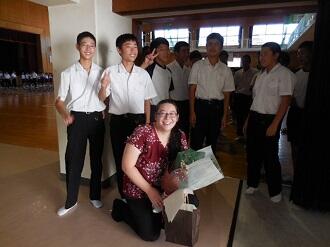 記事が前後しますが、7月18日(水)に本校で2年間ALTとして英語を教えてくださった、キャサリン・カニングハムさんが本国に帰国されるということで、その送別会の集会が行われました。集会では、上手な日本語で生徒のみんなにお別れの挨拶をしてくださいました。とても明るく生徒から信頼されていた先生だけに、お別れはとてもさびしいですが、本国で、また活躍をしていただきたいですね。ありがとうございました。