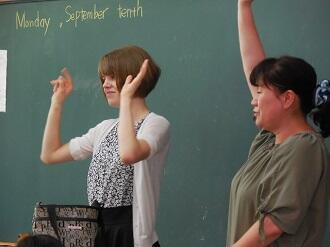 2学期から、ALTの先生が交代しました。名前は「エリン・クシング」先生です。アメリカ出身の方です。とっても勉強されていて、日本語もとっても上手です。そして、エリン先生、なんと「イラスト」がとっても上手という特技があるんですね。そんなエリン先生と、生徒のみんなも早く慣れて、楽しい英語の授業になるといいですね。