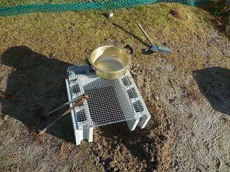 早速火起こしをして、鍋の水を湧かしてその中に空き缶を入れていきます。炊きあがりの様子は、また後半で。