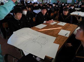 1年生は、地域に直接出て行き、危険な場所、もし災害があったとき被害がでそうなところを実際に地域の方と見て歩きました。