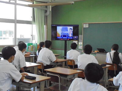 この日は、暑さ対策のためパソコン室から各教室に配信するかたちで実施しました。