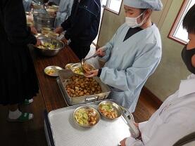 9日(火)の給食は、「地場産物提供事業」として、「マダイの甘酢和え」でした。私たちの住む延岡市では真鯛の養殖業が盛んだそうです。県全体で年間約800トンが出荷され全国第8位のトップクラスの量。今日は真鯛に赤しそふりかけ風味に油で揚げていました。大変おいしくいただきました。