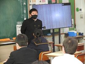 事前に「適性検査」を行い、自分に合っていると診断された職業の中から1つ選んで調べました。緊張しながらの発表でしたが、仕事に就くための進路や給料、この仕事でやってみたいことなど夢のある発表もありました。