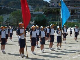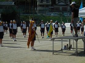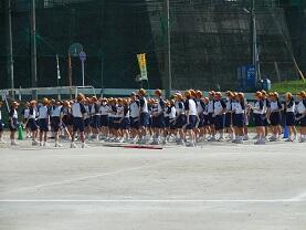 2日(金)、初めての全校体育を行いました。3年生がリーダーシップを発揮し、声を出し、楽しみながら開会式・準備体操・応援の練習をしました。さわやかな秋の空ですが、まだまだ日差しは強いです。