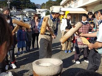 さあ、いよいよ餅つき大会です。(門松作りと並行して行われました。