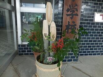 学校用に大サイズの門松2基を青少協役員さんが作ってくださり学校の門に飾っていただきました。ありがとうございました。