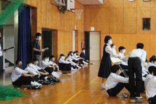 25日(火)、「生徒集会」が行われました。生徒会の皆さんが企画し、発表しました。今回は、「正しいあいさつを意識しよう」「言葉づかいに気をつけよう」をテーマに、先生役、生徒役、先輩・後輩役で良い例と悪い例を演じ、全校生徒で考えてもらいました。日頃の生活を見つめ直す良い機会となりました。