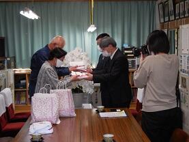 10日(水)、福島区長さんと戸越婦人部長さんが、「旭中のために役立ててください」と雑巾の贈呈にこられました。今年度本校が作成した「地域防災学習」旭中生の学びを富美山地区世帯に回覧していただいた際、「大変よく調査され、危険箇所に気づきました」など反響があり、そのお礼にと70枚の雑巾を作製されたそうです。雑巾にするには立派すぎて躊躇するほどのもので、大変ありがたいと感謝しています。(夕刊デイリーの取材もありました)