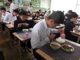 16日(火)の給食は、「地場産物提供事業」として、「うな玉丼」でした。県内で養殖されたうなぎには、ビタミンA・B1・B2、鉄、カルシウムなどが豊富に含まれ、元気の源になる食材として知られています。食べて寒さに負けないパワーをつけましょう。
