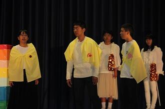そして、3年生ですが、中学校最後の旭祭ということで、とても力が入った素晴らしい発表でした。テーマは、「国際理解」しかも、とても難しい「飢餓」や「貧困」について考えさせられるものでした。特に劇は、真剣な演技で、観客を引きつける素晴らしいものでした。自分の未来がどんなにつらいものでも前向きに生きていかなければという、大変素晴らしい心揺さぶるものでした。観客の中には涙ぐむ人も。とにかく、3年生にとっては思い出深いものなったと思います。