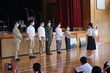 14日(水)、平和に関する教育として、「劇団サラみやざき」による朗読劇の上演を行いました。「蒼天の向こうへ」の内容は、太平洋戦争末期、延岡市に実在した特攻隊長と、その出撃に立ち会った父との再会と別れ、息子への想いを描いたものです。父親の手記を引用し、当時の家族のありようや日常が伝わり、平和の大切さに気づかされました。