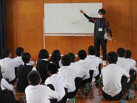 2日(水)昼休み、「登下校時のマナーについて」の集会を行いました。今回は、「馬坂」を通ってくる生徒に対して確認事項を伝えました。狭い道路のため、広がって歩かないことや、通行する側の確認をしました。