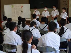 27日(木)の5・6時間目「2年生あさひタイム」で、各グループによる研究発表が行われました。延岡と京都の農業・商業・工業・水産業・スポーツ・観光・食・交通・医療の特色や違いを発表しあい、感想を書く時間でした。どのグループも熱心に調べた様子がうかがえ、また、暑い中、真剣な態度で聞き入っている姿が見られました。新たな発見もあり、とても有意義な時間でした。