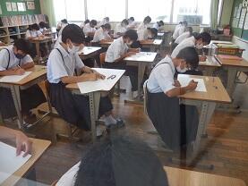 27日(火)、全校一斉に「学力クラスマッチ(国語)」が行われました。今回は四字熟語の事前プリント40問の中から20問が出題されました。7月1日から文化学習委員会の生徒を中心に、各学級で工夫して取り組んできました。