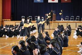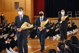 30日(火)、旭中学校を転出される先生方の離任式がありました。