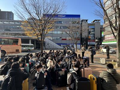 9:40頃に小倉駅に到着しました。これから新幹線に乗って関西方面へ向かいます。新幹線が初めての生徒もいて、とても楽しみにしている様子です。