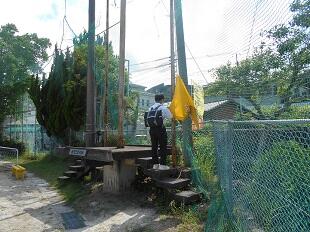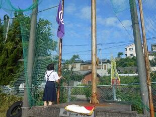本校では、毎朝・毎夕に国旗・市旗・校旗の掲揚と降納を行っています。生徒会役員の仕事の一つとして、毎日頑張っています。