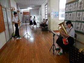 6月19日(金)の放課後。バレー部、女子バスケ部、男子バスケ部が体育館で練習、吹奏楽部が校舎内のいろんな場所でパート練習をしていました。見学に行くと元気のいい挨拶で迎えてくれます。