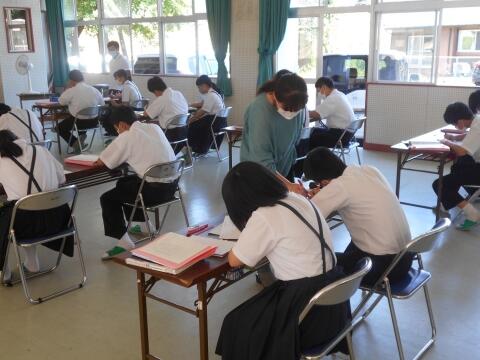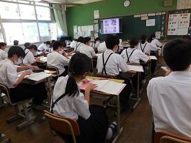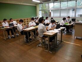 6月に入って、気温や湿度が高い日は各教室の空調設備を動かしています。この日も大変暑い日でしたが、快適な環境の中で集中して授業に取り組む様子が見られました。音楽室などの特別教室は空調設備がないため、扇風機をフル稼働しています。