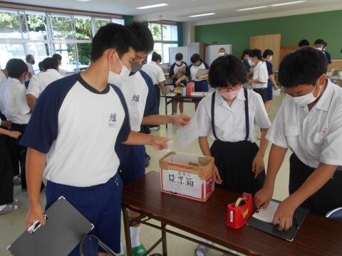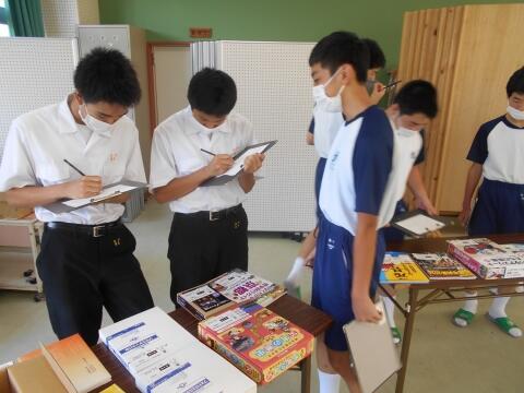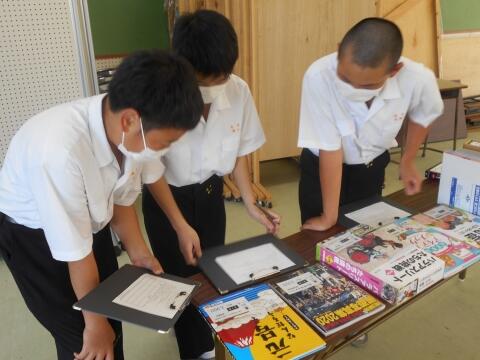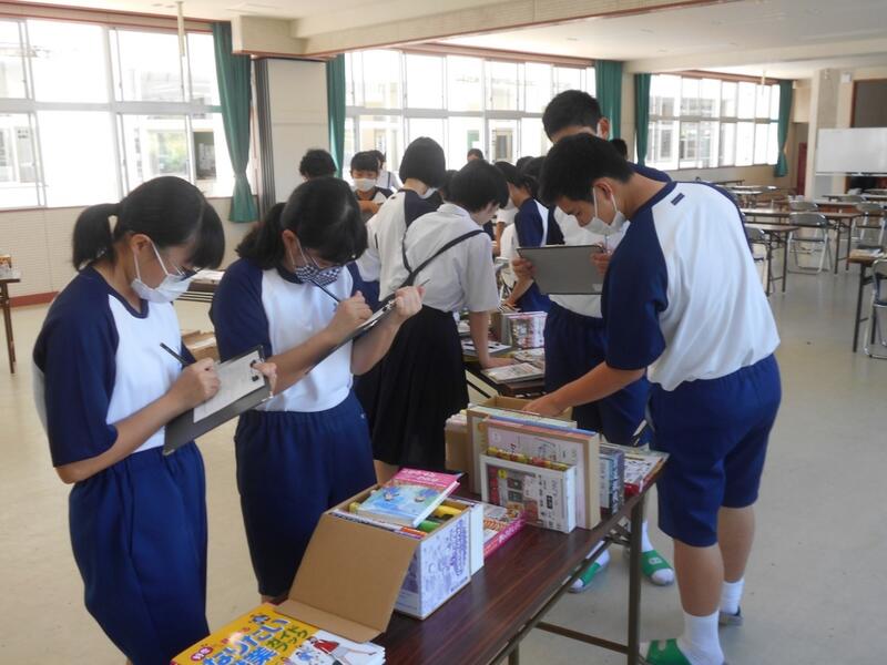 本日の昼休み、3年生と2年2・3組を対象に多目的室において「図書展示会」が行われました。本日が最終日でした。どの本を図書室に置いて欲しいかを真剣に考え、投票していました。業者の方からも「旭中の生徒の真剣さが伝わってきました。良い生徒達ですね」。と感想を述べられていました。