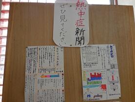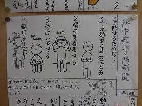 6月と7月の目標は「熱中症を予防しよう」で、各学級で熱中症予防についての新聞を作成しました。どの学級もわかりやすく工夫され、読み応えのある内容です。