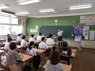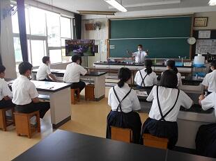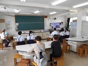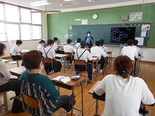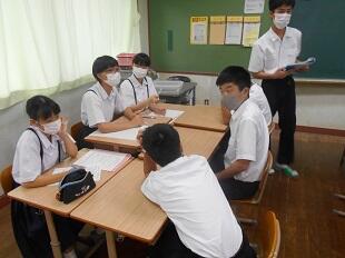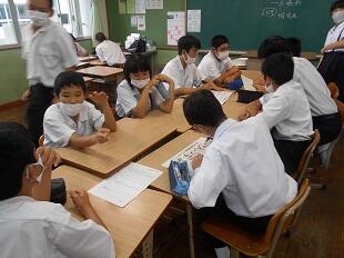 「電池が電流を生み出すしくみを説明できるようになろう」の学習目標で、各班の発表まで行いました。生徒は、真剣に話し合いに参加し、自分の考えを述べるなど、主体的に学びに向かう姿が見られました。