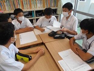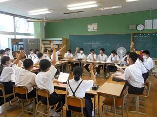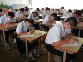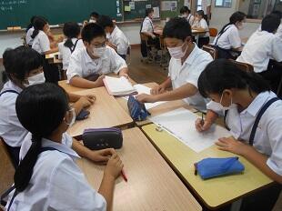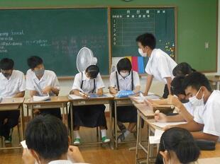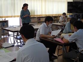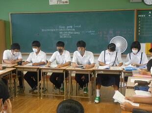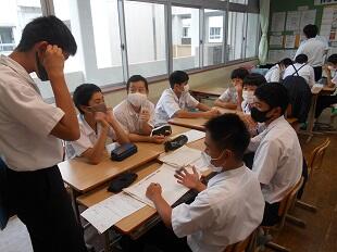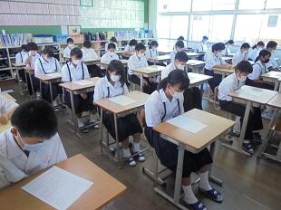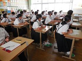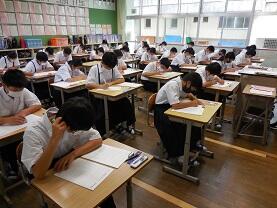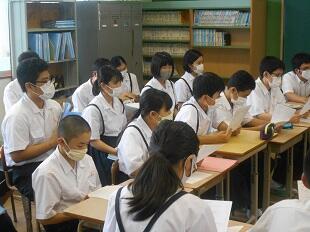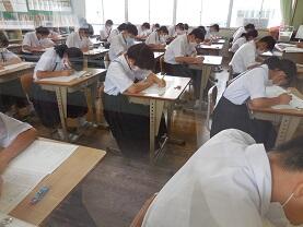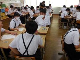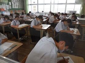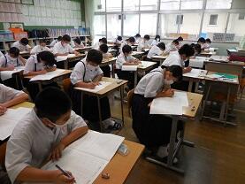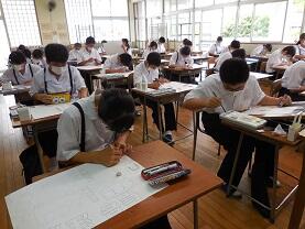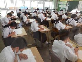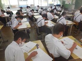 朝から湿度が高く蒸し暑い教室でしたが、空調を入れ快適な中で真剣に取り組んでいました。(写真は2年生の様子)