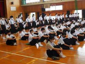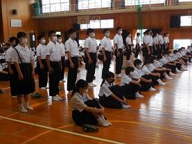 いよいよ「宮崎県中学校特別スポーツ大会2020兼 第71回延岡地区中学校総合体育大会ならびに県吹奏楽フェスティバル」が開催されます。そのため、本日「選手推戴式」を行いました。